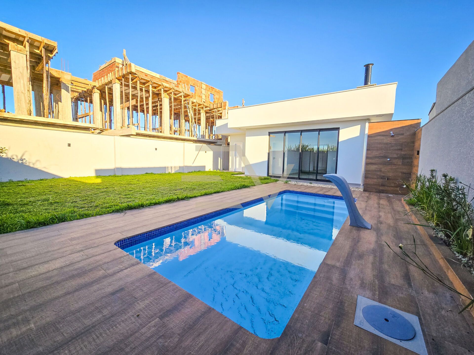 A área de festas integrada à piscina oferece o espaço perfeito para confraternizações, enquanto o jardim nos fundos traz charme e tranquilidade. A casa possui excelente iluminação natural, ventilação e um layout inteligente que favorece o conforto em todos os ambientes.
