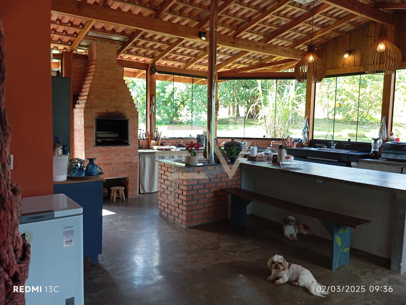 AçudeCercadoChurrasqueiraCozinha americanaCozinha gourmetDepósitoEspaço GourmetEspaço verdeForno à lenhaForro de madeiraGramaGramadoIsolamento acústicoJardimPermite animaisQuintalSistema de alarmeVista para o lago