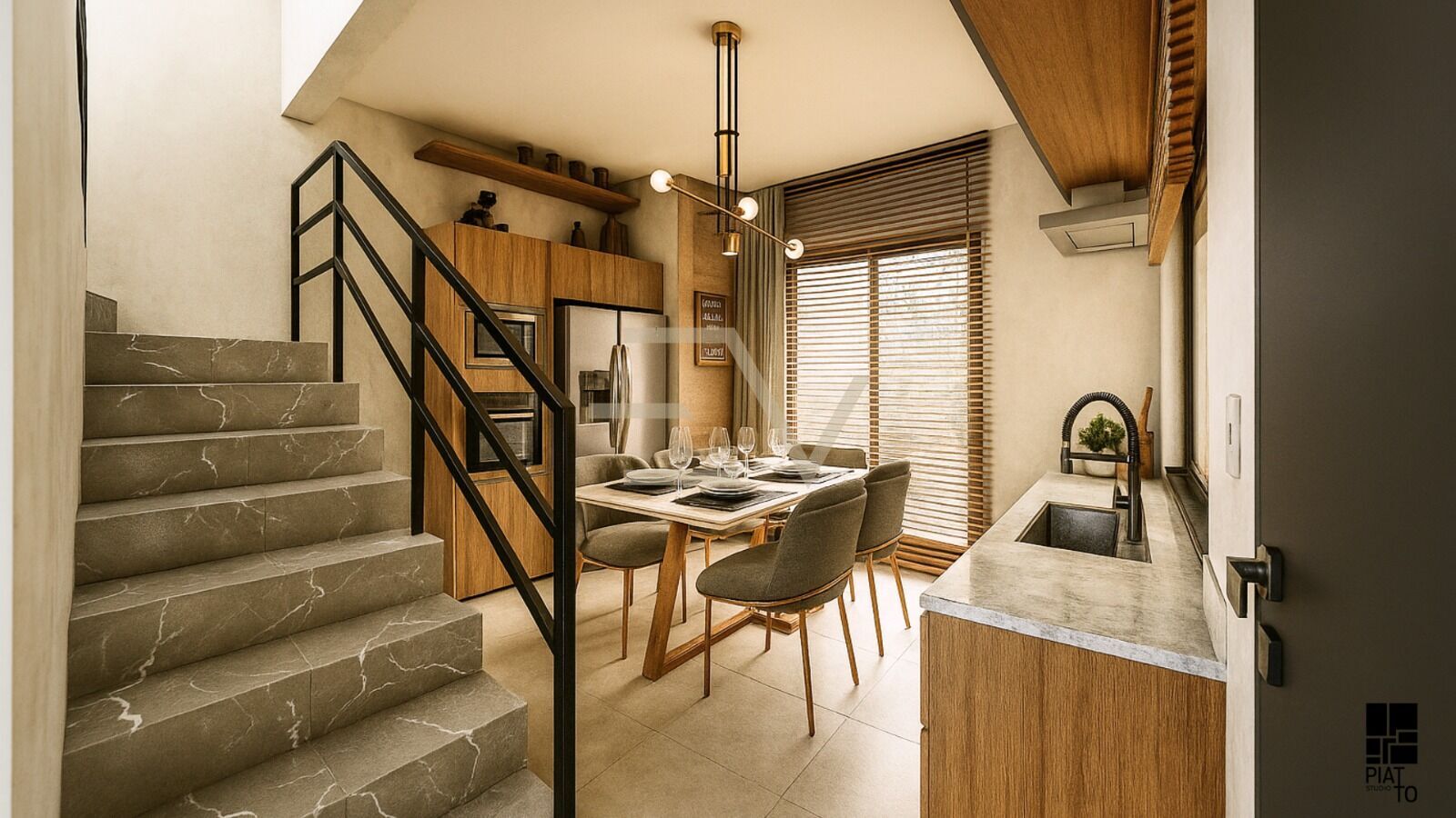 - Sala de estar integrada à cozinha, trazendo mais amplitude ao ambiente